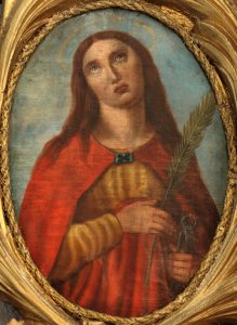 | Agata | schorzenia piersi, zaburzenia laktacji | – piersi trzymane na półmisku/prezentowane w dłoniach -pochodnia/świece/płonący dom -hak/pogrzebacz |