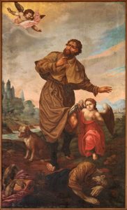 | Krzysztof | zaraza | -strój eremity, pielgrzyma -olbrzym dźwigający Chrystusa -laska/drzewo |