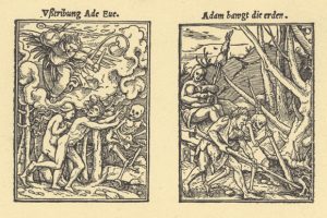 Cykl rozpoczyna się ilustracjami Stworzenia Adama i Ewy oraz Grzechu Pierworodnego. Śmierć pojawia się w trzeciej scenie, w momencie Wygnania z Raju, tym samym objawia się jako następstwo upadku człowieka, jako dług, który należy spłacić wobec Boga …