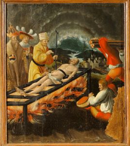| Erazm | choroby jelit i brzucha | -strój biskupa -kołowrót z naciągniętymi jelitami -kocioł |